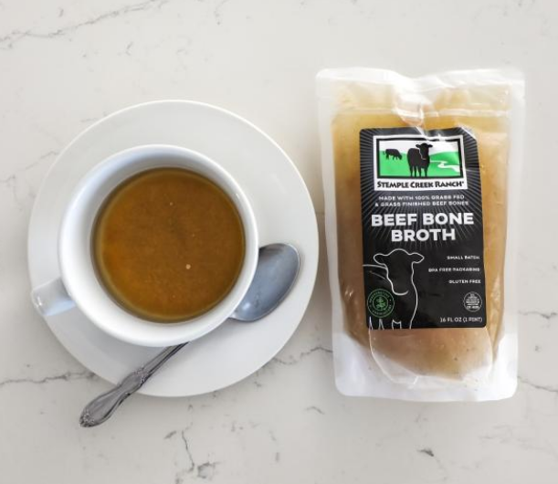 Try Stemple Creek Ranch beef bone broth made from their 100% grass-fed beef marrow, knuckle and meaty neck bones. Perfect for sipping and cooking! It is processed using a hot fill and cool process that keeps the product as fresh as possible. The plastic packaging is BPA free.