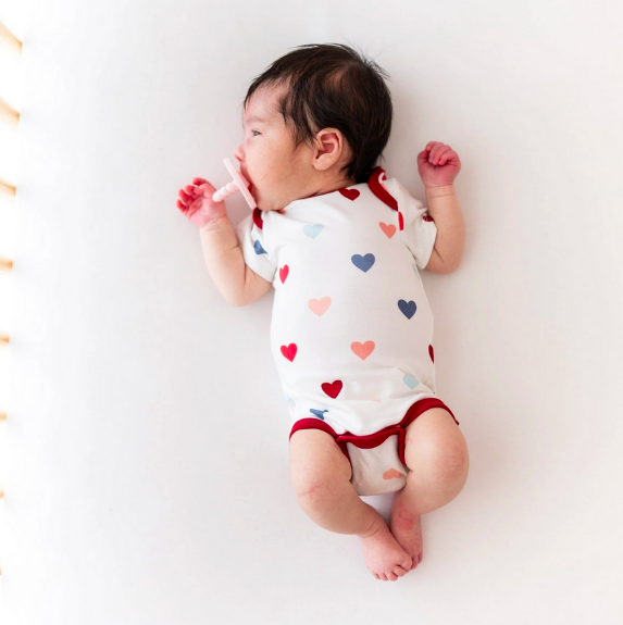 This Valentine’s Day Edition bamboo bodysuit is an essential piece for every mini wardrobe. Silky smooth and perfectly stretchy, these bodysuits work as both a standalone outfit or coordinating piece with any other Kyte BABY product.