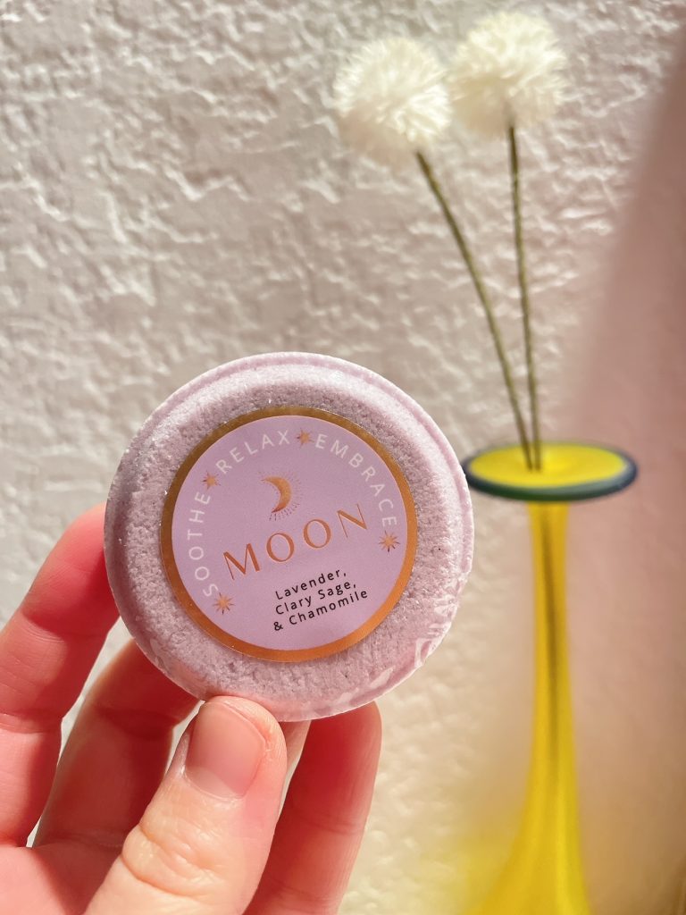 Turn your shower into a luxurious retreat before retiring to bed with this “Moon” shower steamer. Moon shower steamers are hand-crafted and expertly infused with a luscious blend of Lavender, Roman Chamomile, and Clary Sage essential oils to help relax and calm your mind and body.⠀