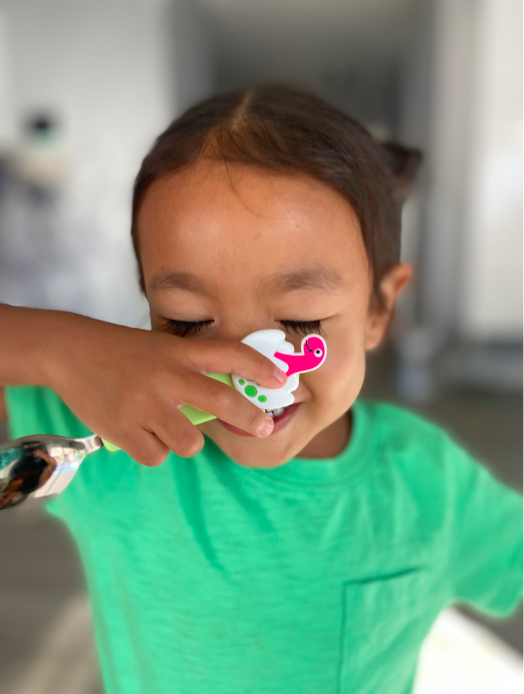 Niko was truly excited to play with the interactive FlexCharms™ that fit on the lunch box as well as the utensils. Feeding experts all agree that getting the toddlers interested in new foods is the first step and this fun little box does that. It is microwave, dishwasher and freezer safe too because of the deep silicone tray.