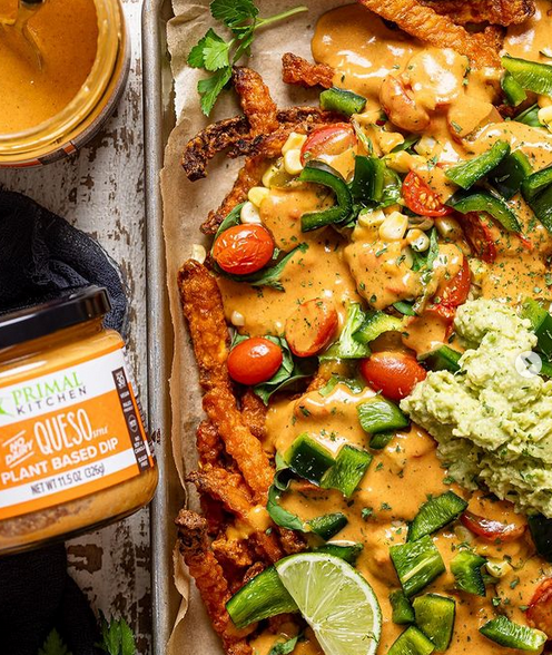 Easy, cheesy, and no-dairy dreamy! Do you want to make crave-worthy Loaded “Cheese” Fries with Primal Kitchen No-Dairy Queso-Style Plant-Based Dip? In Queso emergency, reach for this dip! NEW Primal Kitchen Queso Style Plant-Based Dip is a delicious, no-dairy dream made with creamy pumpkin seed butter. Sugar-free and vegan, this creamy queso features a hint of jalapeños for just a kick of mild chili flavor.