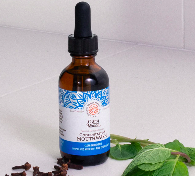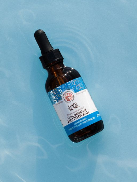 Unlike other brands, GuruNanda Concentrated Mouthwash integrates the natural healing of Ayurveda and state-of-the-art Western medical technology while helping the planet. Instead of swigging straight from a regular-sized bottle (and using up that bottle very quickly), you just dilute a few drops of Concentrated Mouthwash into water and then swish.