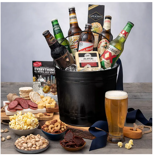 Prost! Cin cin! Salud! Help them say “cheers” from around the world with our Around The World Beer Bucket! Perfect for the beer-lover in your life, GourmetGiftBaskets.com brought together a variety of amazing beverages from six different brewers, and artfully arranged them inside of galvanized steel bucket. And since nothing goes with a tasty brew like great snacks, GourmetGiftBaskets.com carefully selected some of the most beloved gourmet foods to include, creating a gift that’s impossible not to enjoy!