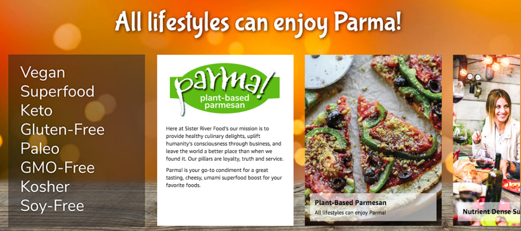 A plant-based umami superfood line of convenient and affordable complete protein products, all Parma! flavors are paleo and keto-friendly, dairy-free, soy-free, gluten-free, non-GMO and Certified Kosher. Moreover, all six Parma! flavors contain whole raw ingredients, are low in sodium, heart-healthy, packed with essential B vitamins and trace minerals, replete with beneficial animo acids and an excellent source of healthy oils.
