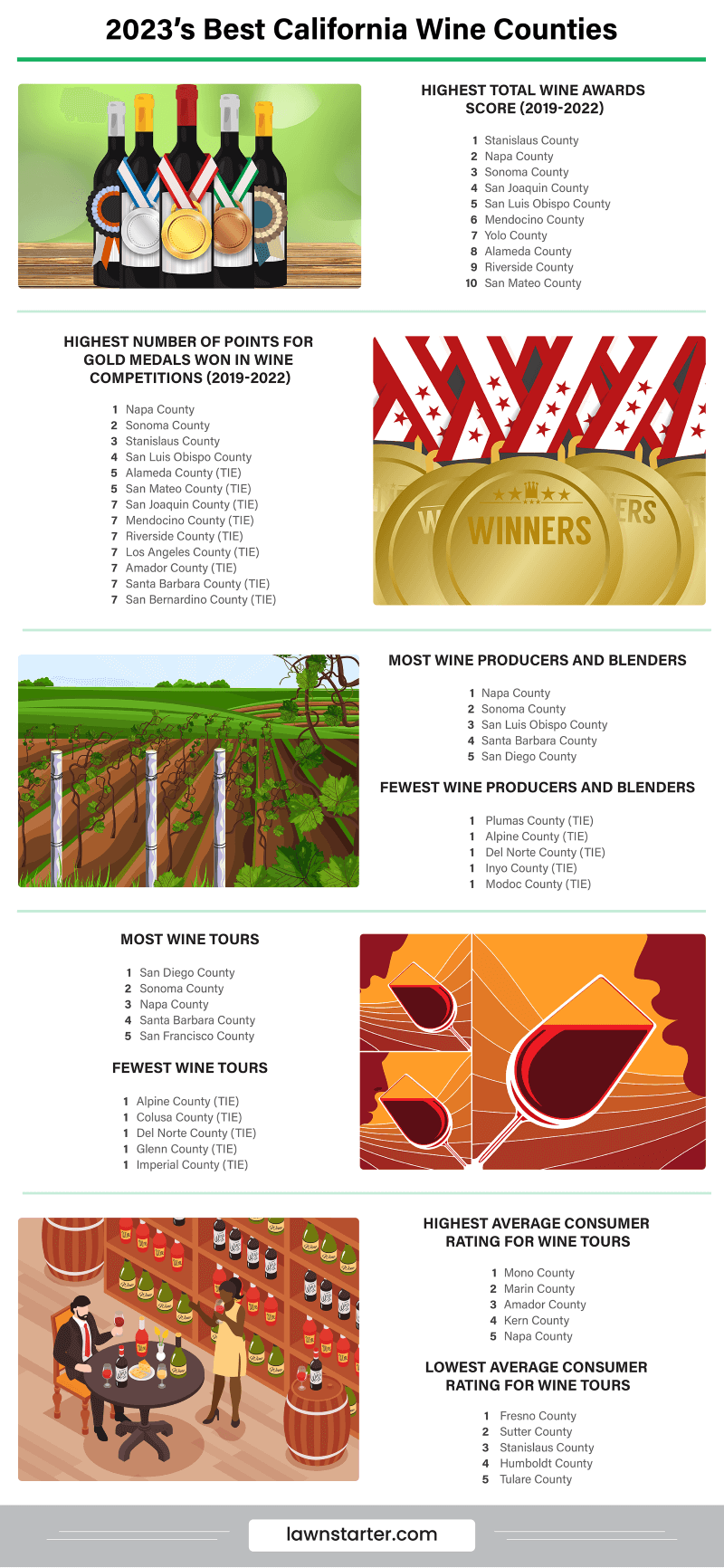 LawnStarter pored over the data to uncork 2023’s Best California Wine Counties.