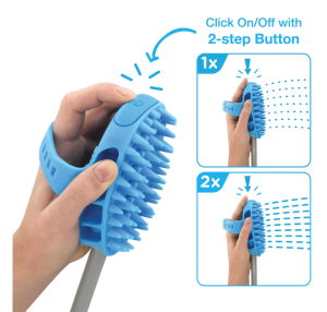 The Aquapaw® Pro is designed with larger dogs with thicker coats in mind to be the easiest and most efficient way to bathe your pet at home. The combination of silicone sprayer and scrubber-in-one allows you to brush and rinse your pet’s coat simultaneously. The innovative 2-stage button mechanism allows you to ‘Click’ the sprayer to LOW, HIGH, and OFF entirely with one hand so you’re never fumbling to adjust the water flow and can keep your pet calm.
