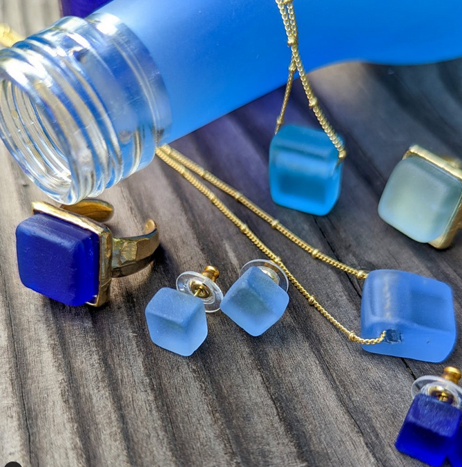 From chunky rings to eye-catching hoops, get ready to make your summer sparkle with the beach-vibe infused collections from Smart Glass Jewelry! Each piece gets its gorgeous hue from post-consumer bottles that are gathered, cut, fired, and tumbled in order to give them a new, more glamorous life.