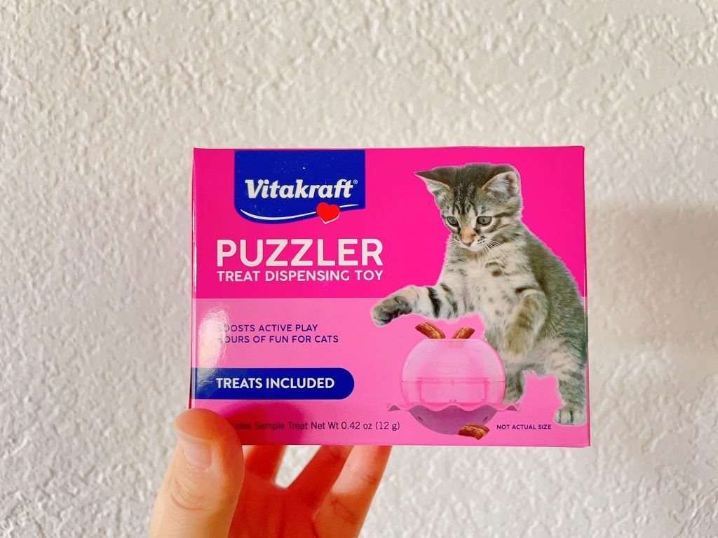 The Puzzler Treat Dispensing Toy comes with a free fun-sized bag of Meaty Morsels in Chicken Recipe with Pumpkin. The new Puzzler Treat Dispensing Toy, available now in 600 Walmart stores, joins the highly coveted line of Vitakraft cat treats available, including: