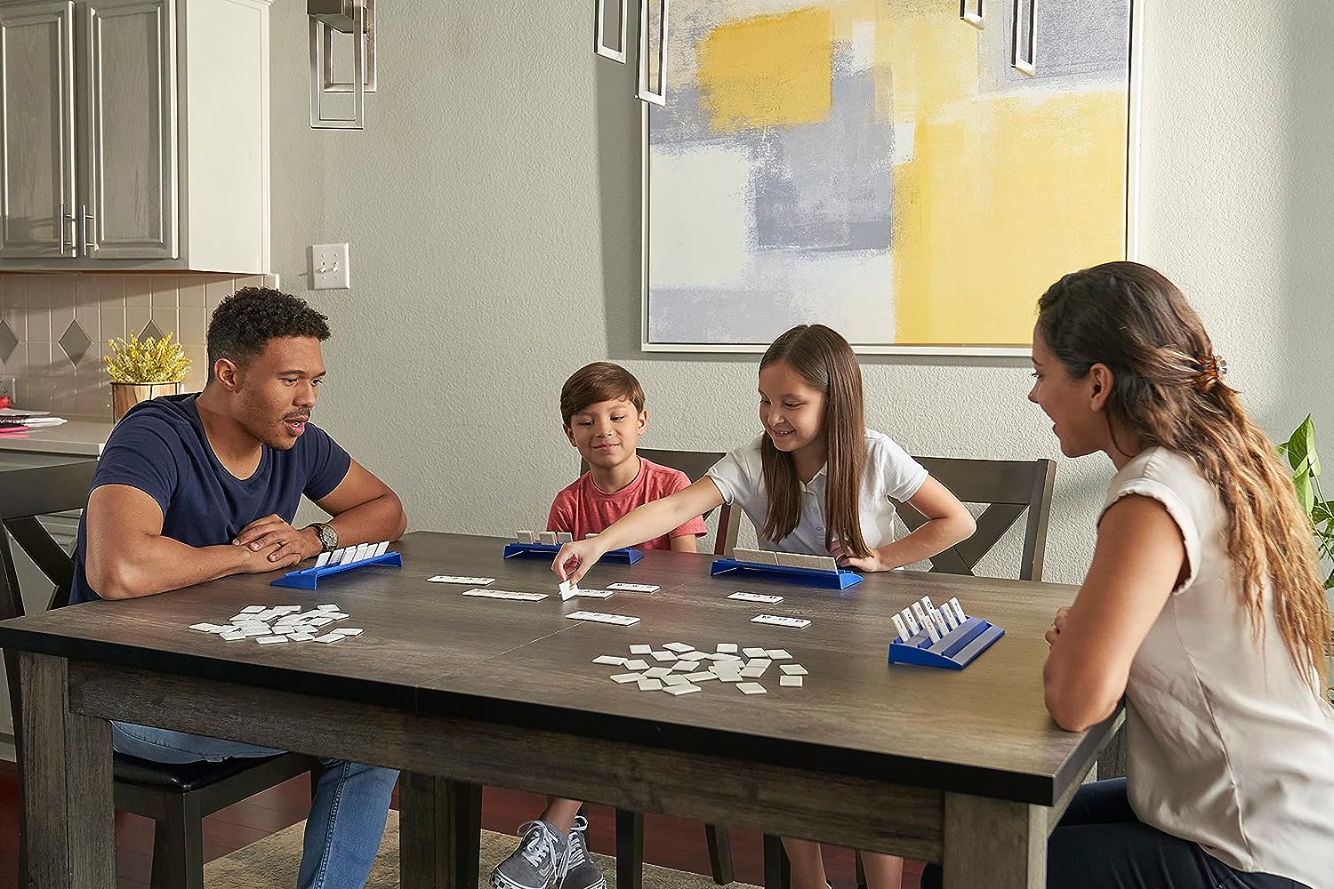 With more than 55 million units sold, Rummikub is one of the world’s best-selling and most-played games. It’s really no surprise that Rummikub is so popular – it has all the elements that make a great game: It’s easy to learn and fast moving, it’s different every time It’s played, it combines luck and strategy, and it changes quickly so every player has a chance to win until the very end. Players take turns placing numbered tiles in runs (consecutive numbers of the same color) and groups (three or more of the same number in different colors), Rummy style. It’s easy to learn, but packed with strategy – the “board” Changes all the time as players adjust the tiles on the table. The Joker tiles add to the fun and can be used as any color or number. Be the first player to play Every tile on your rack to win. Reinforces STEM skills like sequencing, pattern recognition and planning. Rummikub includes 106 high-quality plastic tiles, 4 plastic tile-holder racks, and complete instructions. For 2-4 players, ages 8 and up.