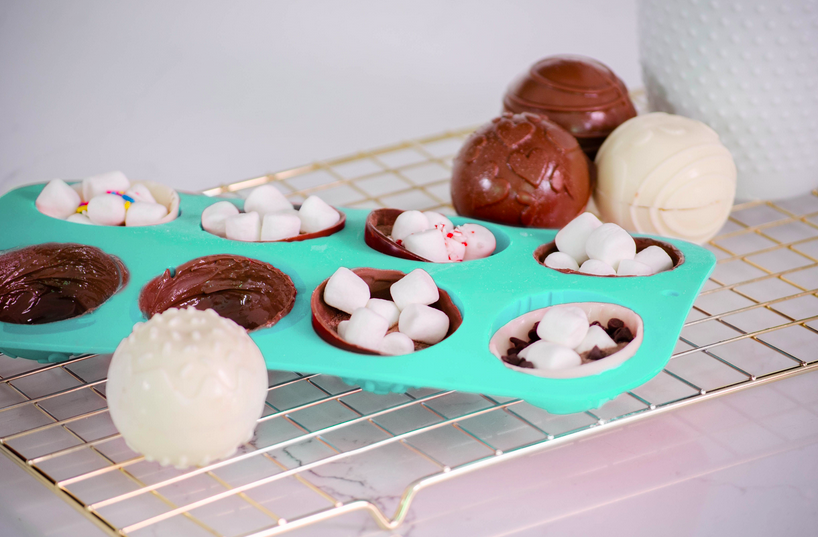 The collection features four curated sets, one for every cocoa connoisseur. From the Ultimate Hot Cocoa Bomb Set to the I ♥️ COCOA BOMBS Intro Set, a great fit for kids, to the giftable Cocoa Bomb Mini Set to the basic I ♥️ COCOA BOMBS Silicone Mold (8 cavity), which offers just the silicone mold, all sets include the QR Code link for recipes and inspiration.
