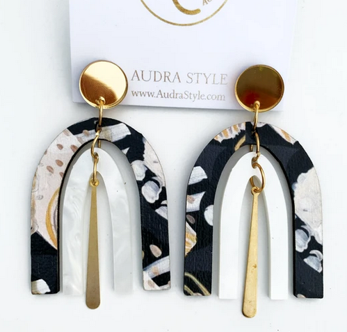 Audra Style has paved the art-fashion industry as the unique creator of wood and leather jewelry for women featuring a mix of her signature prints and patterns created from her original artwork. With a wide selection of earrings, bracelets, necklaces, and other accessories as well as art and home decor, Audra Style’s line is unique, fun, and affordable, plus no two items are identical. With bright, bold colors and patterns, the shapes are cut from wood, acrylic, genuine leather, and brass to mix and match the pieces and patterns in unexpected ways. There are countless styles and designs to choose from, making every item an Audra Style original. Follow them on Instagram @audra_style.