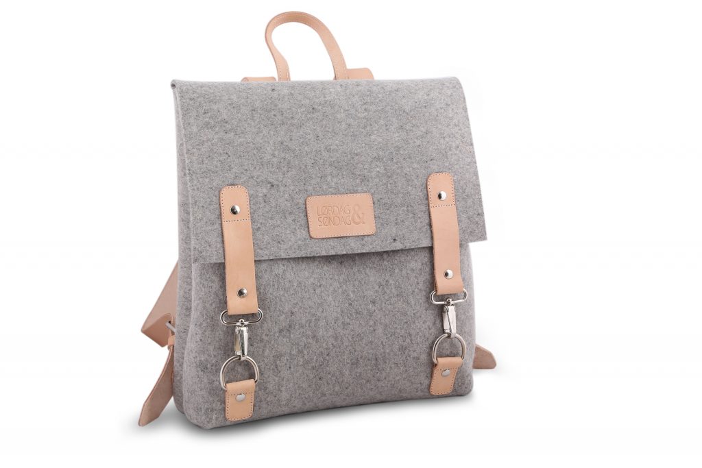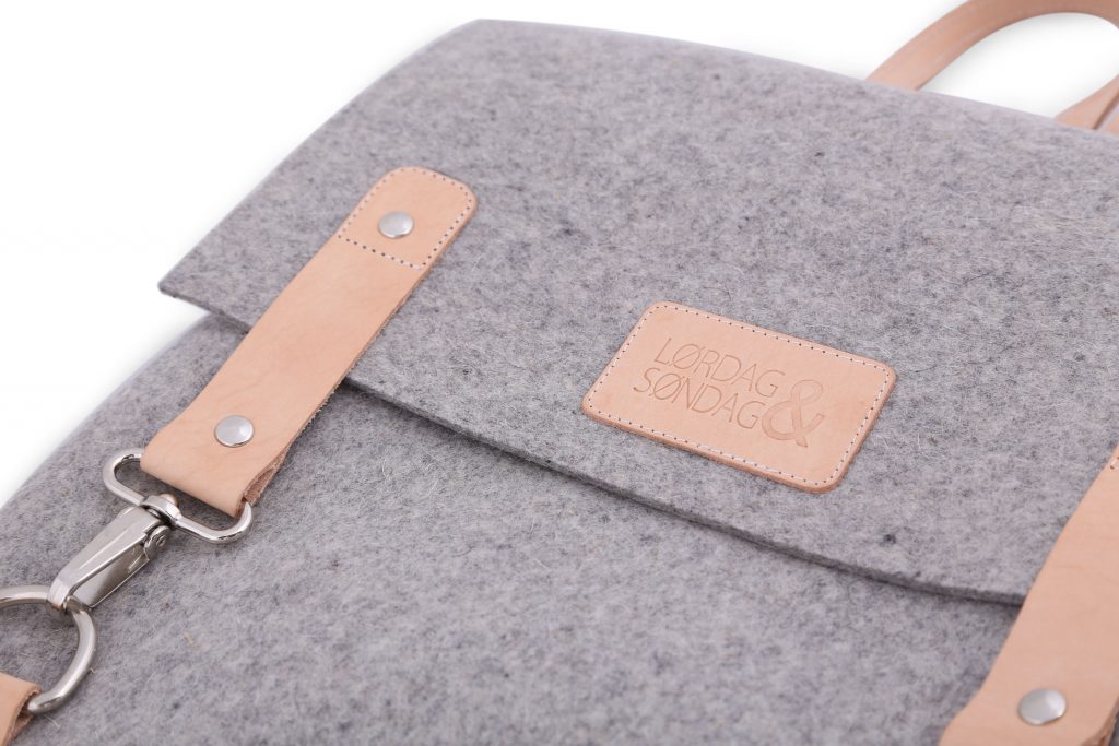 Håndsag is Lørdag & Søndag’s iconic bag. It is an Industrial felt and vegetable tanned leather backpack with inner division and compartment, also both made out of felt. This backpack has reinforced leather straps and its closures are two metal clasps, which allow easy access to the content of the bag.