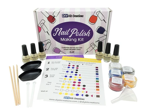 Designed to allow customers to create the perfect shade for themselves, the Nail Polish Making Kit and the Lip Gloss Making Kit come with five different specialty mineral pigment powders and unlimited color possibilities. Used by top professionals in the United States and Europe, the nail polish dries very quickly and is long-lasting. While the Nail Polish Making Kit is free of formaldehyde and other harsh chemicals, the Lip Gloss Making Kit and Deluxe Lip Gloss Making Kit contain nourishing and ultra-hydrating ingredients that keeps lips soft.