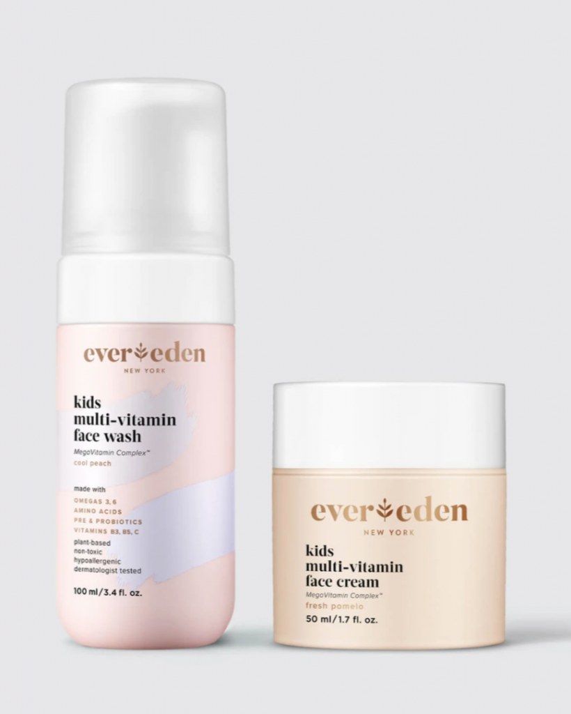 Kids facial skin is under daily attack from dust, dirt, and increasing sebum production–which can cause problems later on if left unchecked. This Kids Multi-Vitamin duo features Face Wash to cleanse and balance skin, plus replenishing Face Cream with the ideal ratio of amino acids, omegas & probiotics.