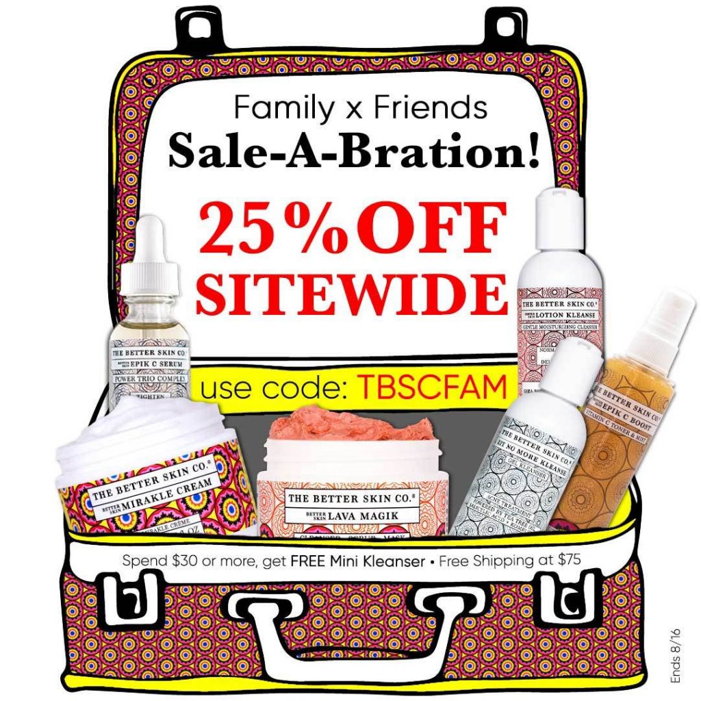 Cue the confetti! The clean, vegan and cruelty-free brand The Better Skin Co. is launching their biggest sale of the year! From August 3rd through August 16th, receive 25% off site wide with the code TBSCFAM.