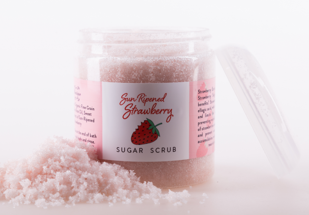 $18.50A little more kick is added to this sugar scrub! With a healthy dose of Strawberry powder infused into the scrub (which coincidentally added the natural coloring to this scrub) this scrub is perfect for face and body.