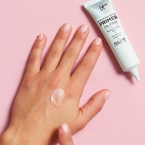 Apply a thin, even layer onto clean skin, after your moisturizer. Blend foundation and other makeup on top for a smooth, fresh finish that lasts. Can be worn on bare skin for an extra boost of hydration. Your Skin But Better Primer+ ($39) is available on sephora.com and itcosmetics.com.
