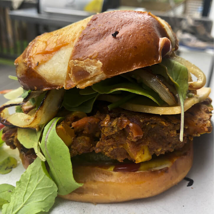 13. Form eight individual patties with clean washed hands, placing them on a baking sheet or clean cutting board before transferring them to the stovetop. 14. To cook, grill on the stovetop or your outside grill as they stay together really well!For the stovetop: Spray with olive oil to prevent sticking. Heat a skillet over medium heat. Once the skillet is hot, cook the burgers on each side until browned for about 5 minutes per side.