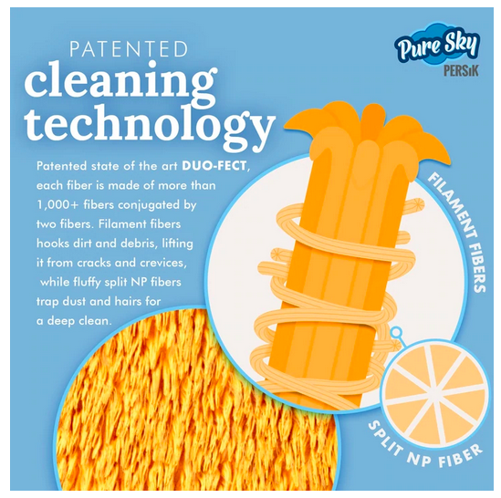 Pure-Sky Microfiber is made of patented state-of-the-art composite Ultra micro fibers, consisting of Multifilament yarns that are made of more than 1,000 strands per yarn. Allowing you to clean nearly any surface using JUST WATER!