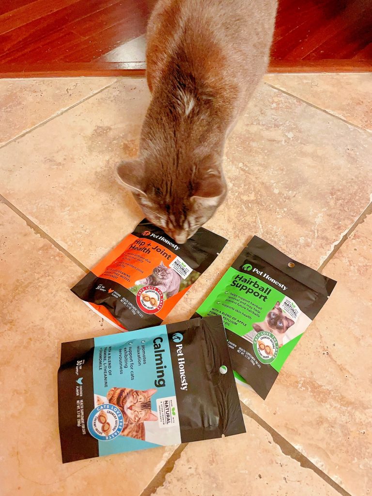 Pet Honesty‘s new cat health supplements provide targeted support for cats’ top health and quality of life concerns, including Hairball Support, Calming, and Hip + Joint Health. All of Pet Honesty‘s supplements are formulated with the highest quality natural ingredients and premium active ingredients that are science-backed and vet-approved with the bonus of pet-approved tastes for an easy daily routine. These treats are crunchy, creamy, & delicious. Yes, even you picky cats will love it!