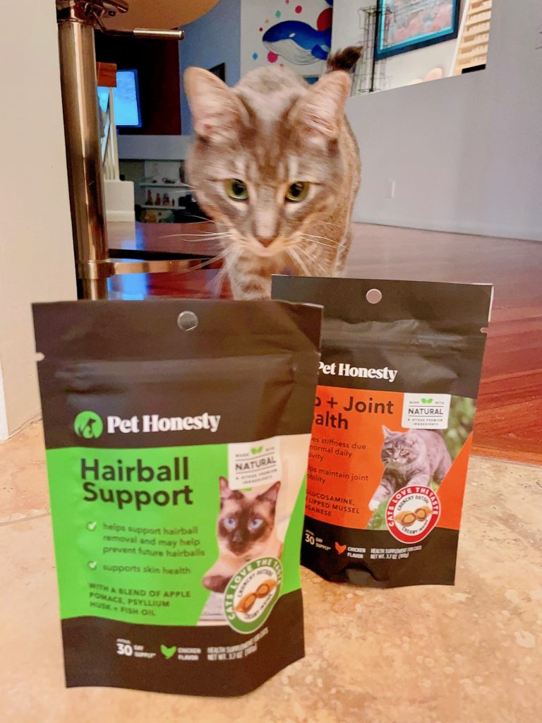 Pet Honesty‘s new cat health supplements provide targeted support for cats’ top health and quality of life concerns, including Hairball Support, Calming, and Hip + Joint Health. All of Pet Honesty‘s supplements are formulated with the highest quality natural ingredients and premium active ingredients that are science-backed and vet-approved with the bonus of pet-approved tastes for an easy daily routine.