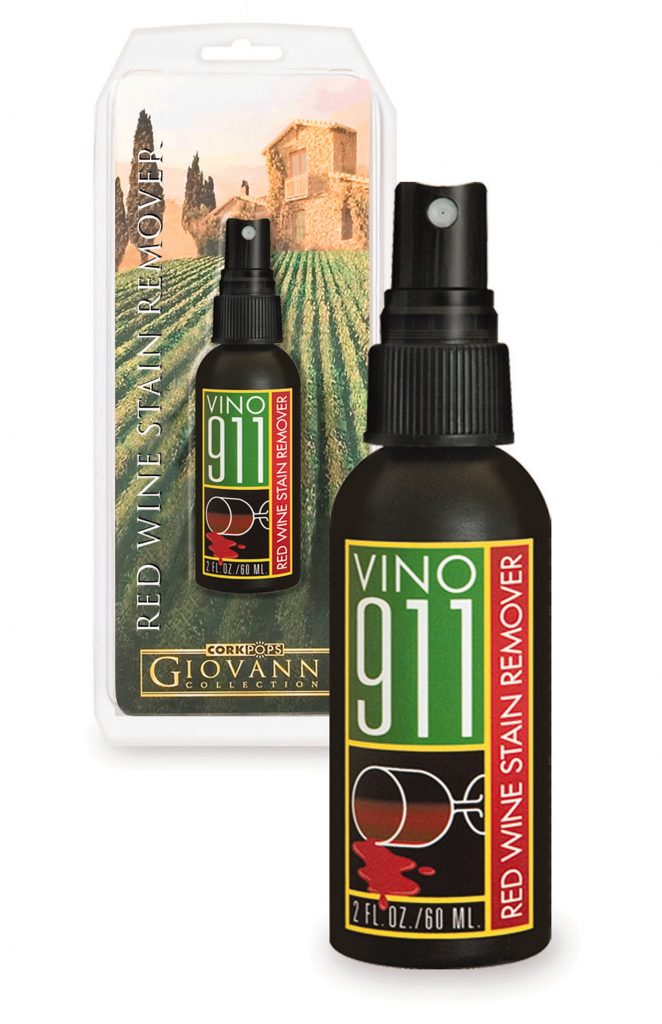 - To remove a wine spill, gently shake the Vino 911 bottle and spray on the red wine stain, blot excess with a clean white cloth and let dry.