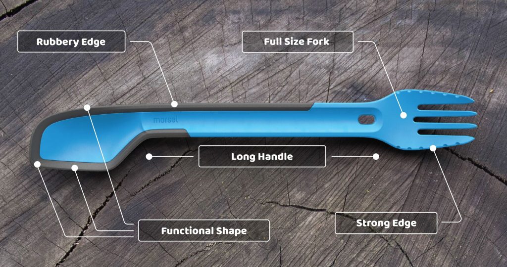 “We wanted to design a better spork that solved all the shortcomings of conventional sporks and camping utensils. No more stubby forks. No more dripping soup. No more snapped handles. No more dirty hands from deep pots and bags. No more excess food waste on dirty dishes, and no more food scraps for wildlife. Our goal was to solve these problems and combine the solution into a single, elegant utensil.