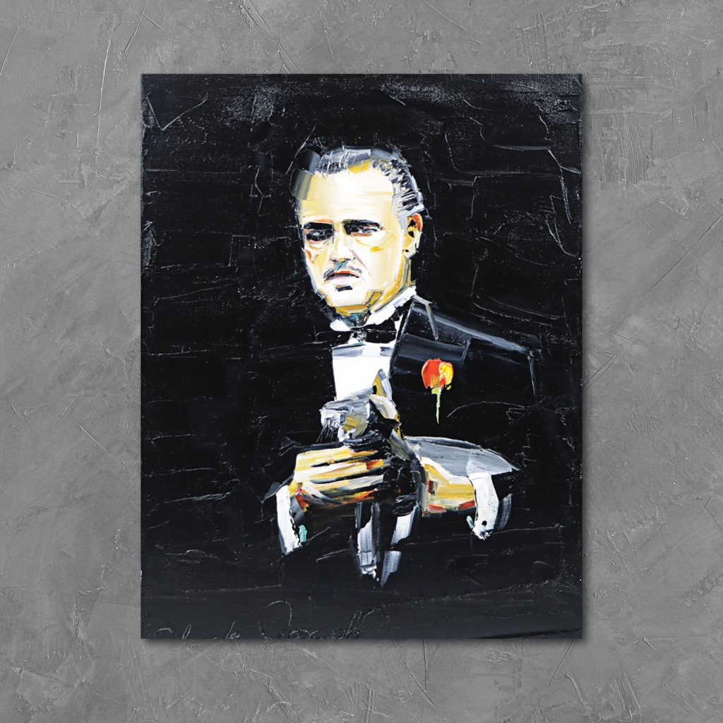 - On My Daughter’s Wedding Day, 16×20 inches; Oil Palette Knife on Canvas, $2,350 – A portrait of Don Vito Corleone, the titular character from Francis Ford Coppola’s “The Godfather,” as portrayed by Marlon Brando in the 1972 film.