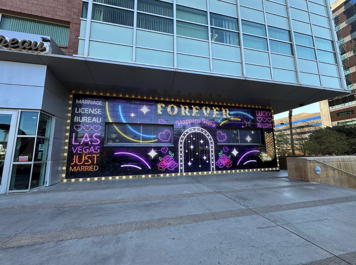 The new mural will remain on display for at least one year at the Regional Justice Center building on the corner of Clark and 3rd St. With the Marriage License Bureau open 365 days a year from 8 a.m. to midnight, it will also serve as the ultimate backdrop for Instagrammable wedding and engagement photos, offering couples a memorable setting to capture the excitement of their special day.