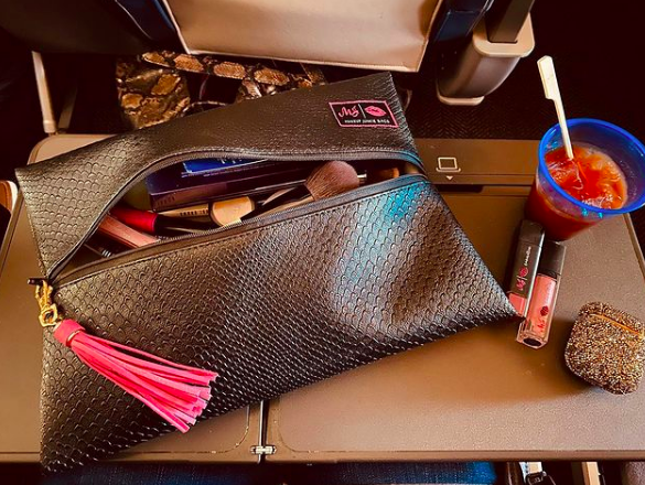 Add that to the fact that these bags are created with dimensions to fit all of the best MODERN supplies and you have a total winner. Most makeup bags won’t fit eyeshadow palettes or professional brushes but the Medium does because MJ designed its length specifically for that. The large is also designed around a can of Kenra hairspray which is fairly tall. Those can fit full size shampoo conditioner etc. So, you have a bag that is flat and can hold tons of stuff!