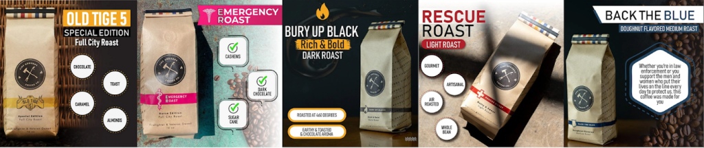 Six first responder-inspired coffee selections, with fun names such as Bubba Brew, Rescue Roast, Old Tige 5, and Back The Blue, to satisfy every coffee lover’s palette.