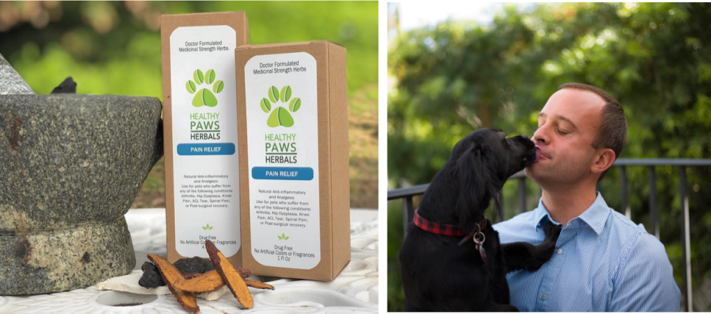 Utilizing 2,000 year old time tested formulas for dogs, cats, and horses, Burton developed three liquid herbal extracts—Pain Relief, Calming and Allergy + Itch—that are slightly sweet and mix easily into pet food. As a herbalist in Los Angeles, Burton has been writing custom formulas for his two legged clients for over a decade. After receiving numerous requests from his patients—and successfully answering a call for help from his brother’s dog suffering from allergies and itching—Burton decided to combine his extensive experience in Chinese medicine with his love for animals. “Having an alternative to traditional medication is something people have been doing for years, why wouldn’t man’s best friend have that option as well?,” says Dr. Kyle Burton, Founder of Healthy Paws Herbals. “So when I began to receive requests from my clients for alternatives for their pets, it felt like a natural next step.”