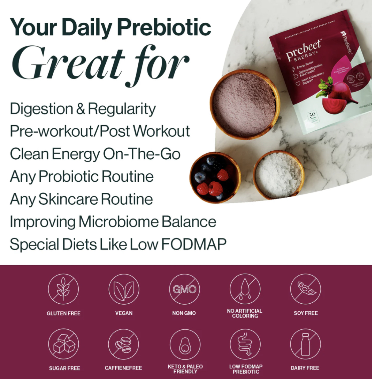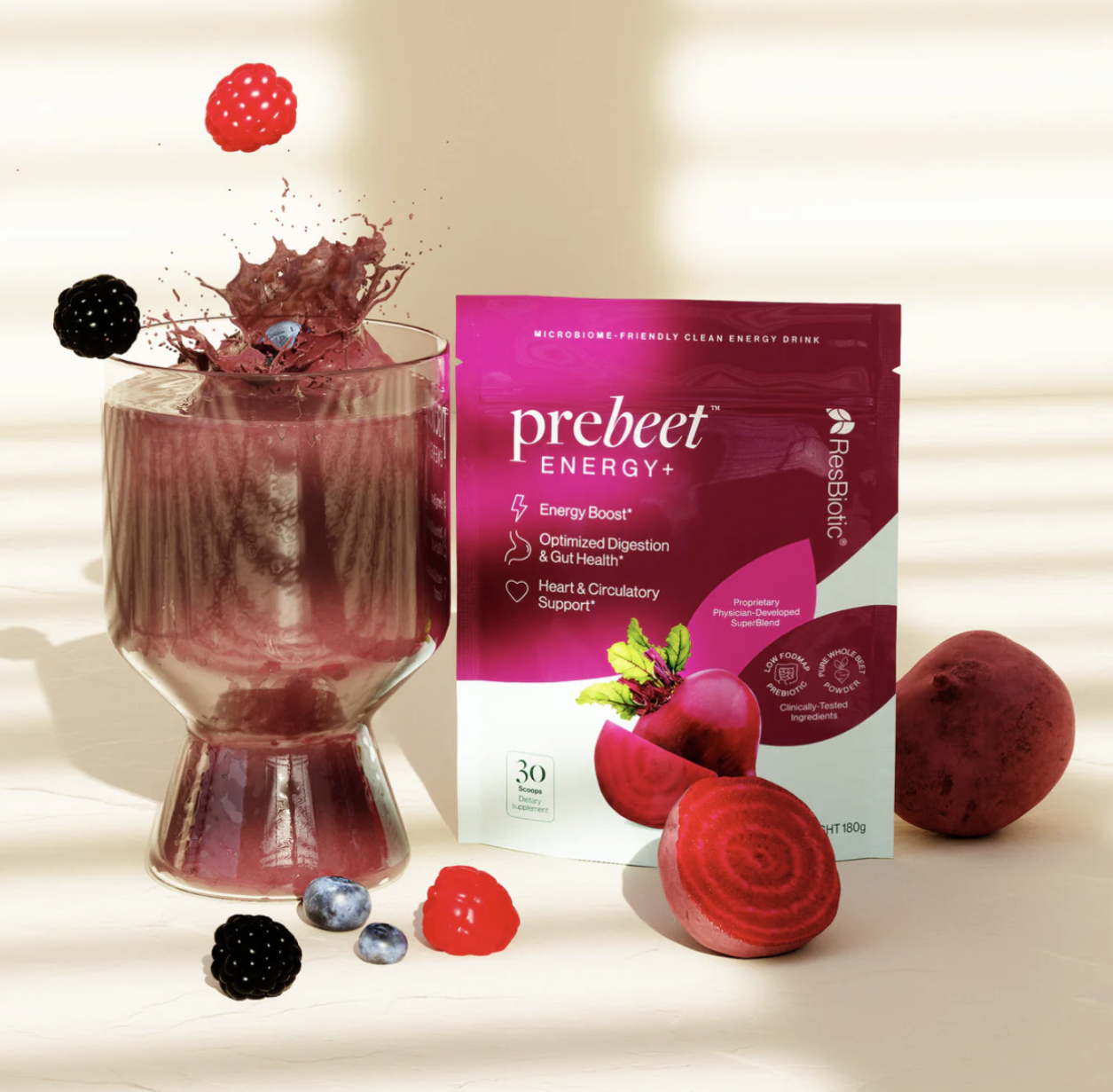 prebeet® is your daily 4-in-1 microbiome boost developed by world-class physicians to improve digestion (bloating & bowel movements), supercharge energy, restore skin balance, and strengthen heart health.*