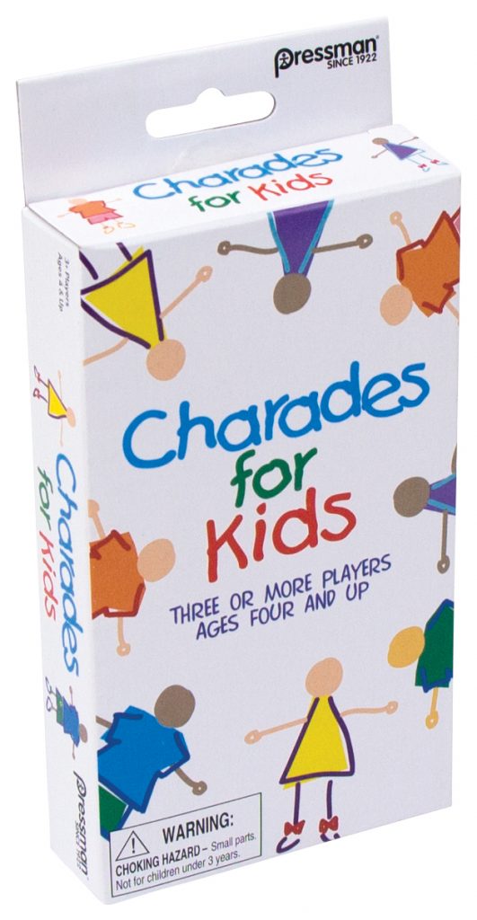 This classic game of Charades is designed especially for kids to play and enjoy! With three levels of clues, kids of all ages can participate. Each card has a clue with a picture, so no reading is required (although the combination of the picture and its corresponding word reinforces early reading skills). Younger players can act out a toothbrush, a cat or a bumble bee! Older children can read the simple words and phrases and act out actions like eating spaghetti or playing guitar! This game is great for the whole family to play together as they try to guess the charade before time runs out! For 3 or more players, ages 4 and up.