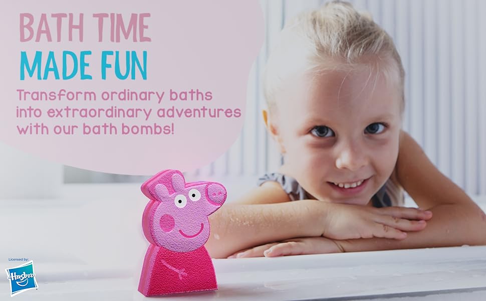 Make Baths a Blast – Send imaginations soaring while your tot’s favorite Peppa Pig & Family mini bath bombs for kids fizz, swirl, and transform tub time into a rainbow-colored wonderland of simple, splashy fun!