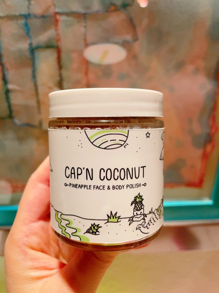 Stay loose and warm up your core with a cozy soak in Cap’n Coconut Pineapple Face & Body Polish. Coconut Brighten up that beautiful face with this Face & Lip Polish. Moisturizing oils, soothing honey, scrubby sugar, and a twist of pineapple create a light putty with a gentle, juicy formula.