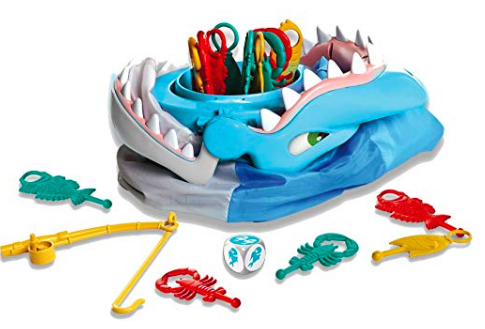 Get ready to have a REEL-y good time when you play Shark Bite! Snag the fish and be the winner, but if the shark jumps, you’ll be his dinner! Place the fun and colorful sea creatures into the game unit with a snap, and grab your friends to start playing. Players take turns rolling the die and fishing for the sea creatures using the fishing rods. But watch out – you never know when the shark is going to bite!
