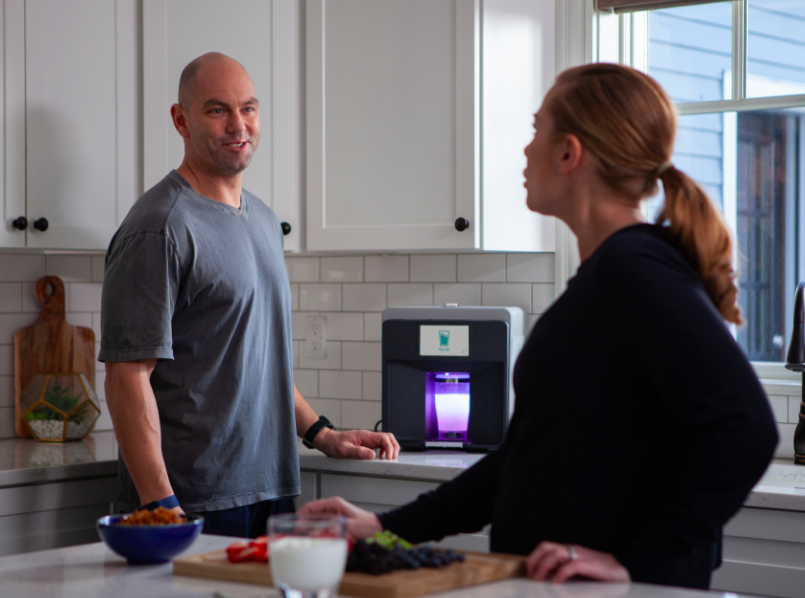 Designed with coffee maker ease, Mixfit V2 measures out a refreshing beverage that’s packed with a precision stack of personalized nutrients. It tailors everything in real-time to your individual health profile and includes factors like age, gender, weight, geographic location and even air-pollution. Plus everything can be dialed in wirelessly right from your smartphone and its companion app (MINA).