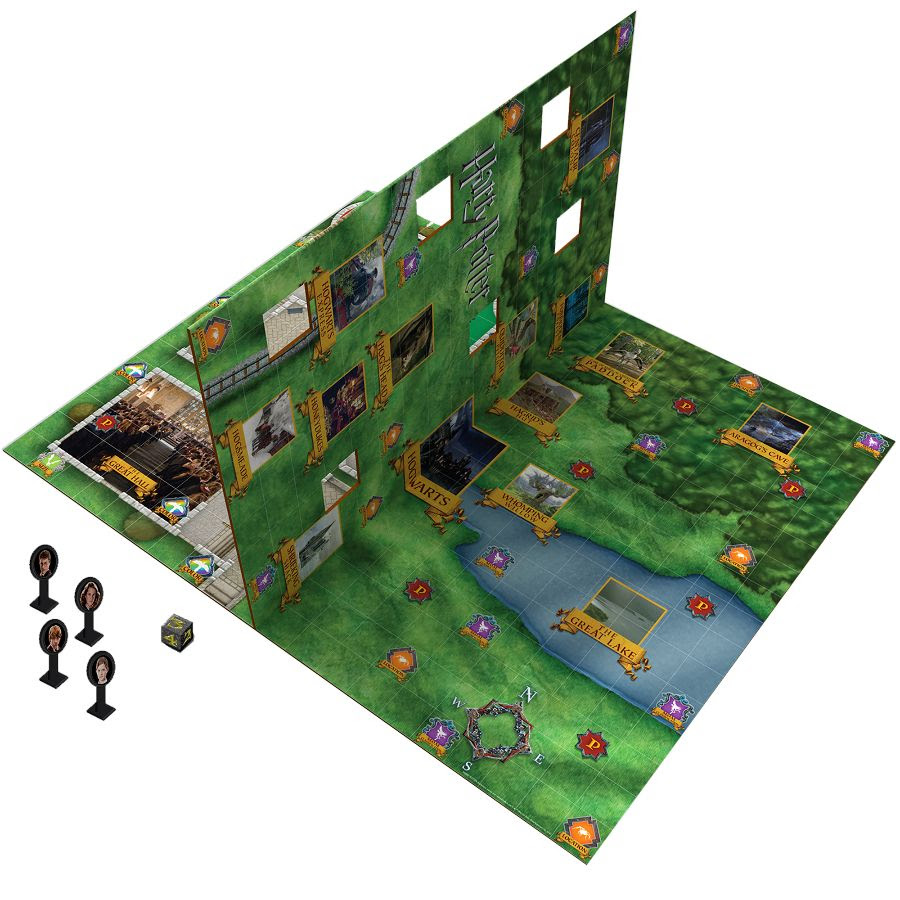 - Unique swinging game board allows play inside and outside of Hogwarts