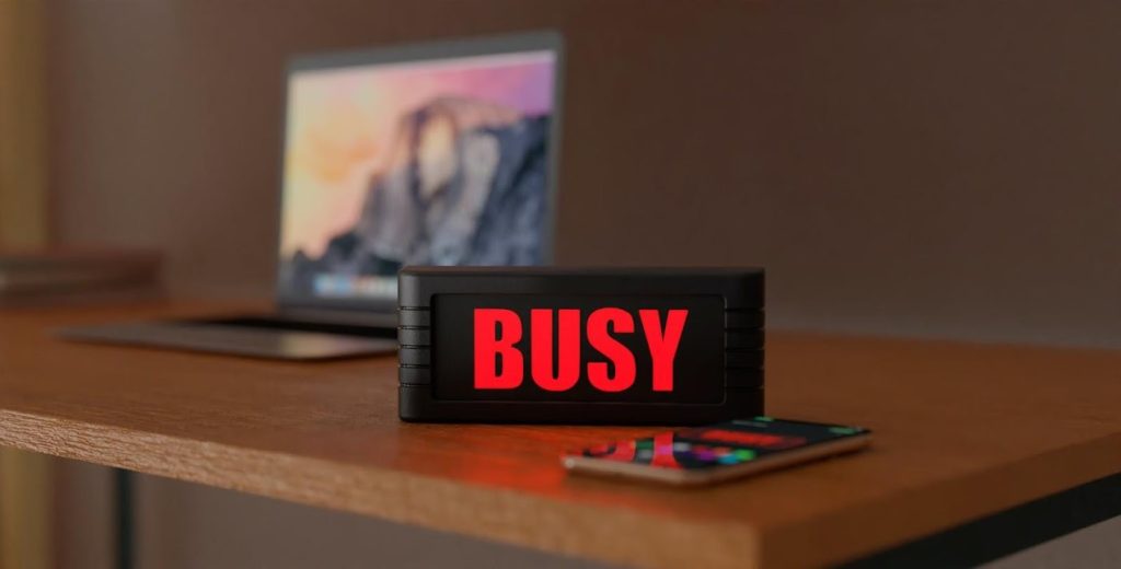 The BusyBox is amazing for glass doors and open concept offices. Without the BusyBox, it is nearly impossible to tell whether someone is available, doing light work, or in the zone without asking them. Now you can display what level of “busy” you are without worrying that someone might walk in while you’re working.