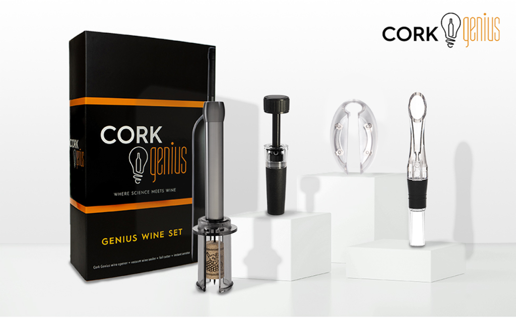 Cork Genius is the smart way to open wine. Created by a team tired of the wine snobbery and ineffective tools available, they set out to determine how to design an easier method to open a bottle of wine. The result had them turning to science, blending chemistry and physics. They used a needle to pierce the cork and injected air underneath, causing it to pop out easily and quickly. Thus, Cork Genius was born. Brilliant!