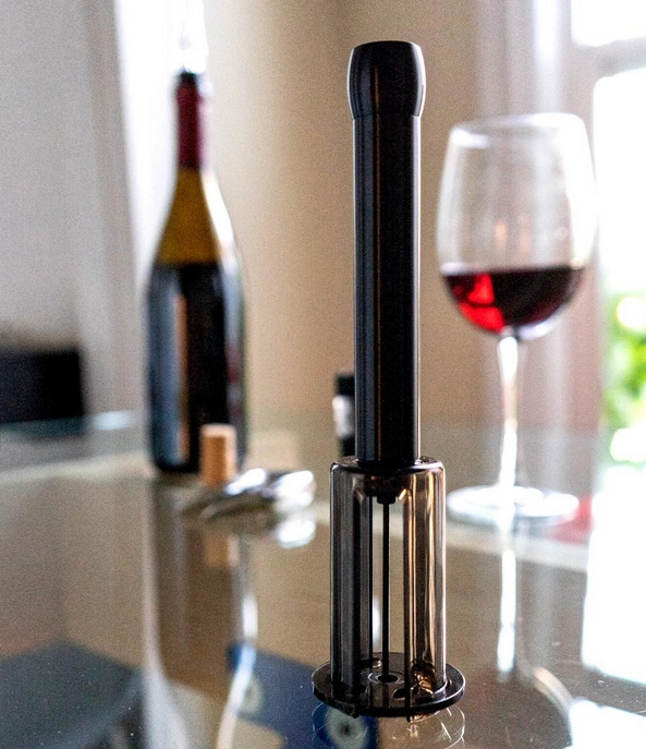 This easy-to-use air-pump opener wields the power of air-pressure to quickly eject the cork of all standard-sized wine bottles, eliminating all the annoying pulling, tugging, and twisting of a normal corkscrew.