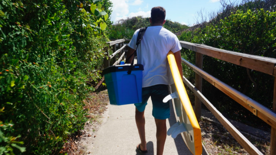 STEP 1 – Fill up the U-Stand with beach gear, attach the lids.