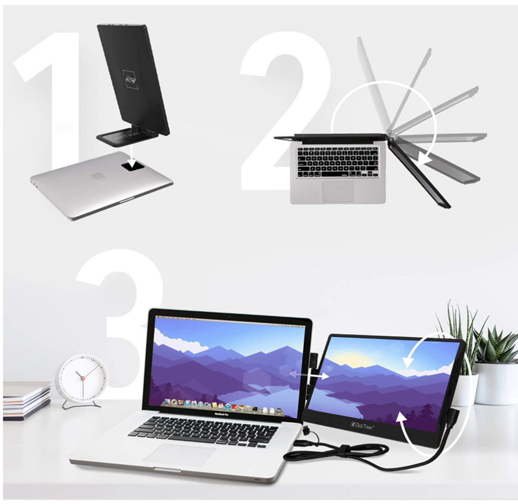 - MAKE YOUR LAPTOP DUAL SCREEN >> Instantly double your laptop screen workspace with this game-changing new attachable portable monitor technology! SideTrak Swivel is a 12.5” Full HD portable monitor that securely attaches to the back of your laptop to combine the productivity of working on two screens with the portability of a laptop!