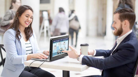 The SideTrak portable laptop monitor allows team members to work from home, coffee shops, meetings, and business trips more efficiently. This innovative solution will save you time and money. SideTrak’s 180-degree screen share capabilities allows team members to mirror their screen and share content with an audience. This will revolutionize your team’s meetings, presentations, demos, and more!