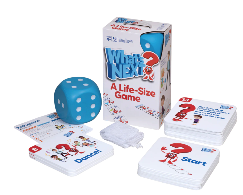 This holiday season, give the gift of connection, creativity, and endless fun with What’s Next? A Life-Size Game. Perfect for all ages, this one-of-a-kind game brings family and friends closer together, making every gathering special. Whether you’re playing to win or simply enjoying the journey, the memories created with What’s Next? will last a lifetime.