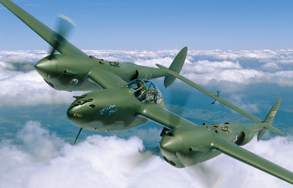 Ingenuity and endurance brought Glacier Girl back to the surface where she had crash-landed half a century before. The team created a device they called the “Super Gopher,” which circulated heated water through a metal cone to melt holes 27 stories deep and reach key sections of the plane. Then they began the long, dangerous process of dragging out the pieces, including the 3-ton, 17-foot-long fuselage. It took 20 minutes to lower each worker down to the aircraft in the claustrophobic 4-foot-diameter shafts. The final section emerged on August 1, 1992. The P- 38ʼs sections were in good enough shape for restoration. The team estimated it would take two years. It would take ten to reconstruct the plane. Glacier Girl has the only complete set of working P-38 machine guns in existence and is considered by many to be the finest warbird restoration flying. In 2006, Rod Lewis purchased what would become the signature aircraft as part of the Air Legends Foundation.