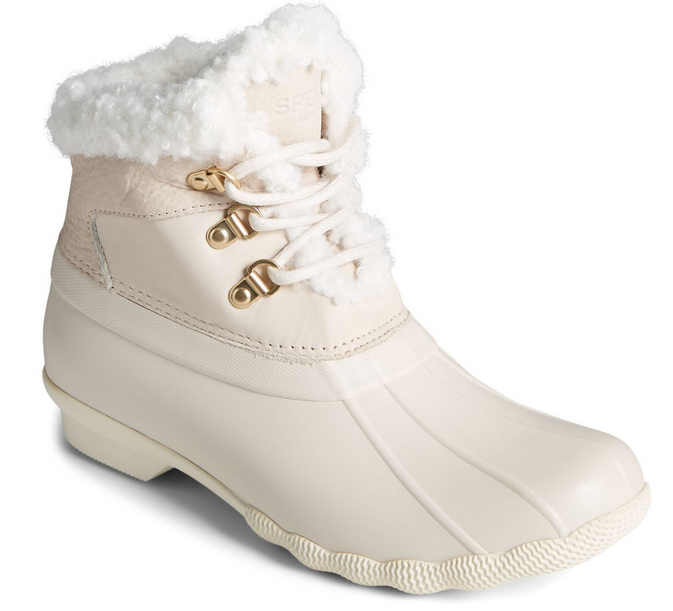 They don’t call it an icon for no reason… Saltwater Alpine Duck Boot: Water-resistant leather shaft with faux fur trim and rubber duck shell D-ring hardware with cotton laces and side zipper for easy on/easy off versatility and a secure fit.