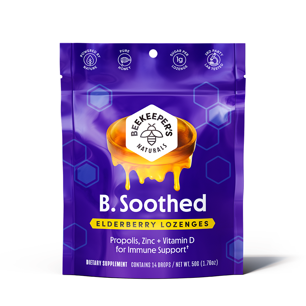 The Beekeeper’s Naturals Elderberry Lozenges soothe the throat with nature’s best ingredients, including elderberry, propolis, zinc, vitamin D, and raw honey. Each drop only contains one gram of sugar and tastes amazing!