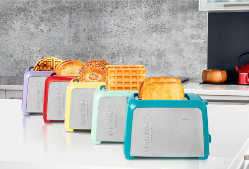 If your children are fans of toasted bread, waffles, or bagels for breakfast – the 2-slice toaster from Holstein Housewares is a versatile appliance that allows you to try different toasting levels in a few minutes. It features a crumb tray that facilitates cleaning and is available in vibrant colors that look amazing with its stainless steel frontal design.